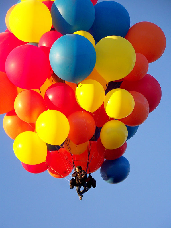 The inflation went smoothly. I got into my harness and got ready to go. Mick briefed me on the winds and checked out my balloons, which after three previous tries were finally inflated and ready to fly in Connecticut. |