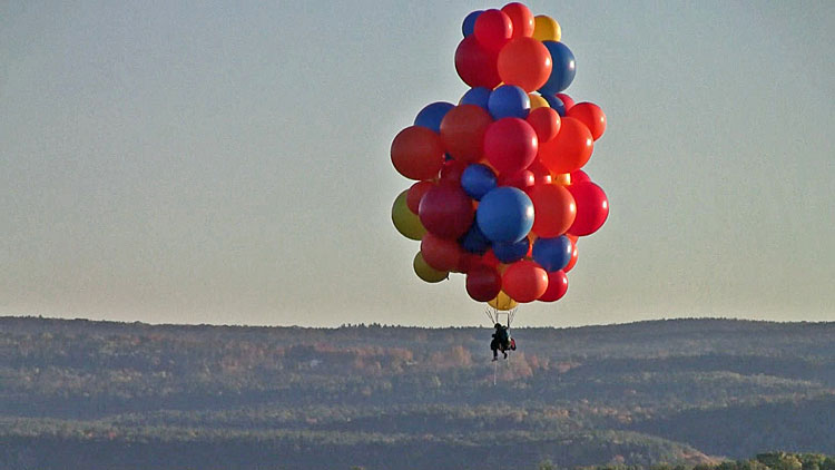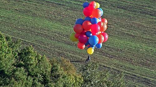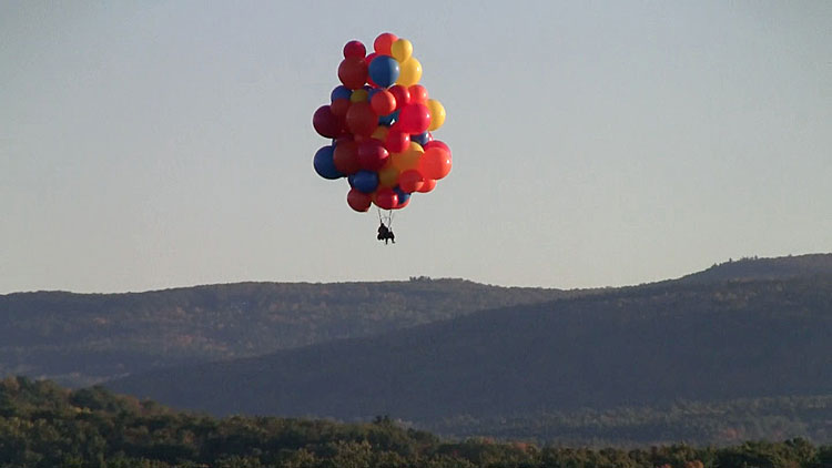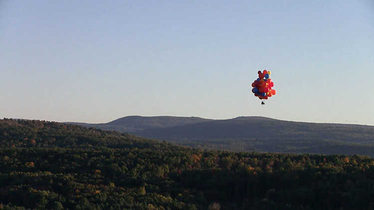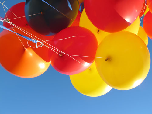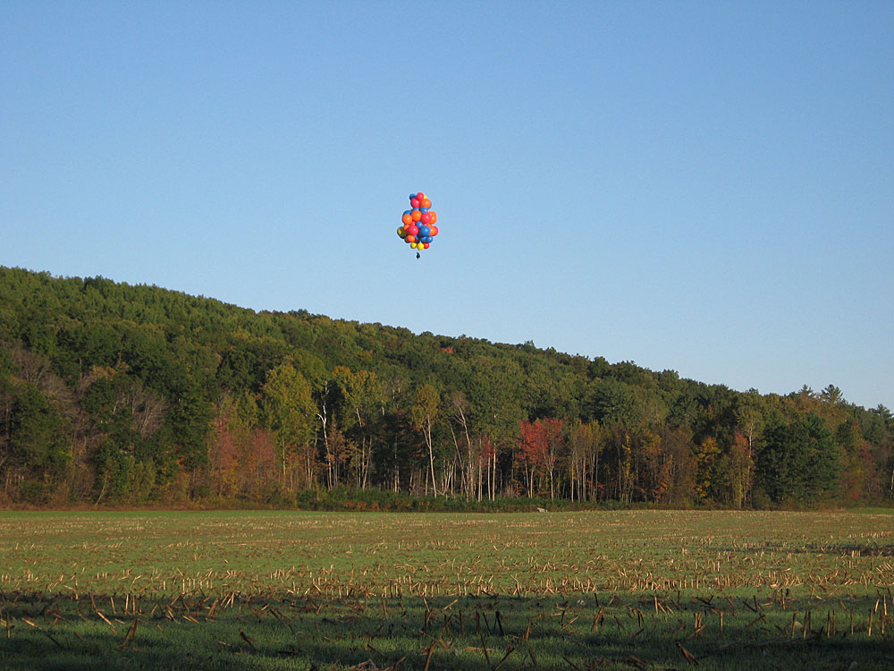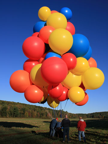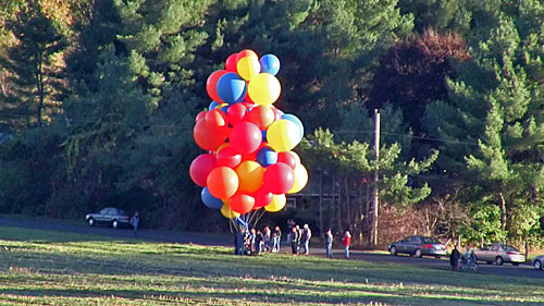 | Local residents came out to see the cluster balloon, and to take a few balloons home. |