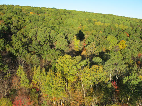 I called Gary and Carol on the radio, and had them check with our local crew volunteers about what lay out ahead in the direction I was going. Mostly trees, was the answer, which was pretty much all I could see out to the horizon. I decided to land. |