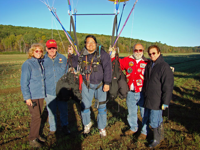 ...to a soft landing among the cut cornstalks, in Sheffield, Massachusetts. I was in what the locals call the Mile-Long Corn Field. My crew arrived and walked me out to the road. |