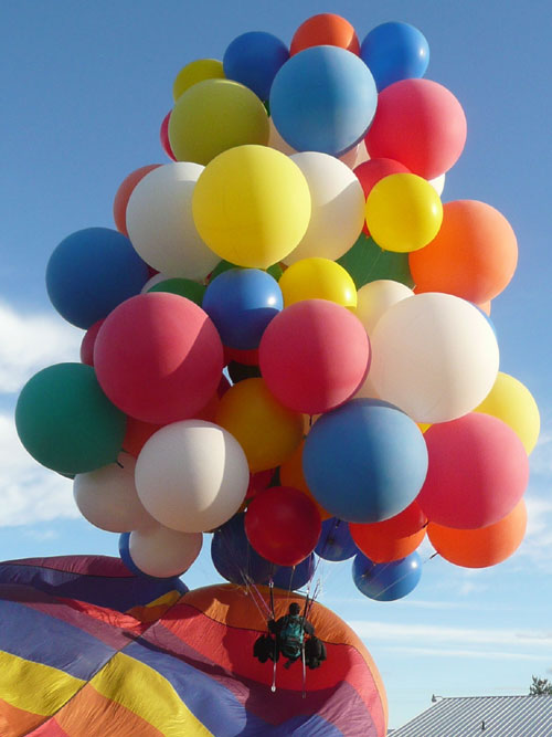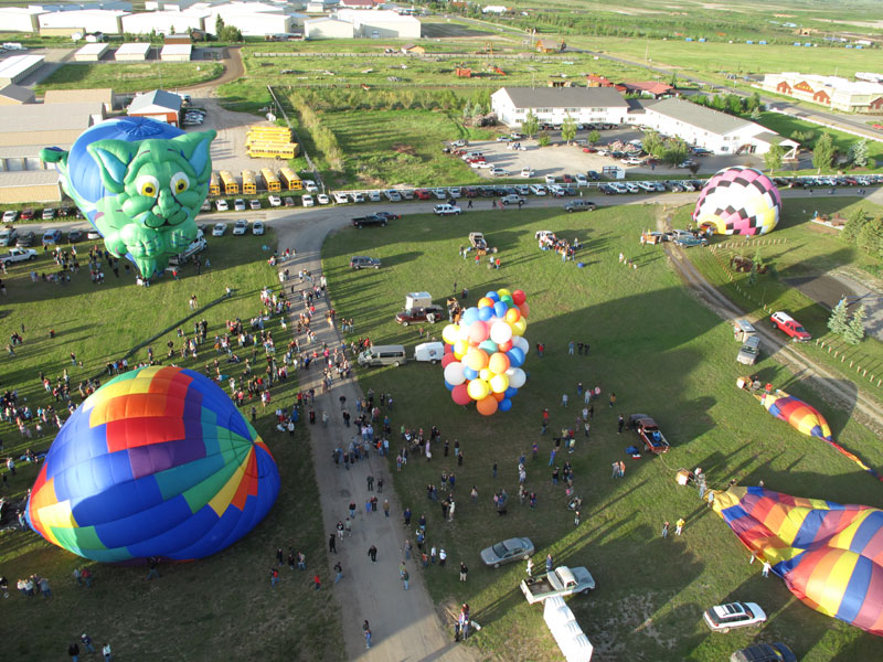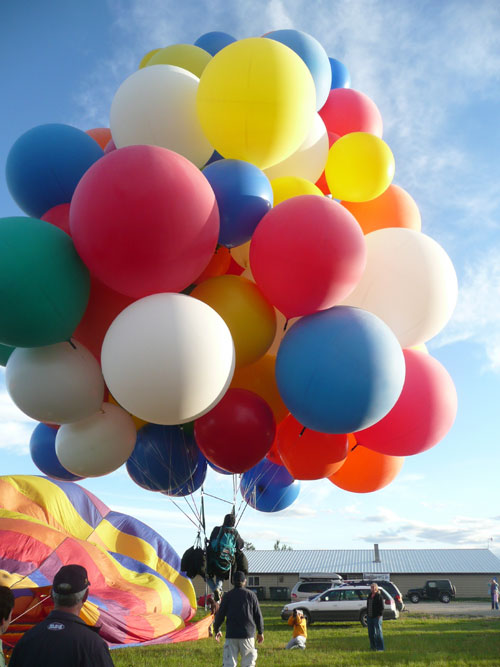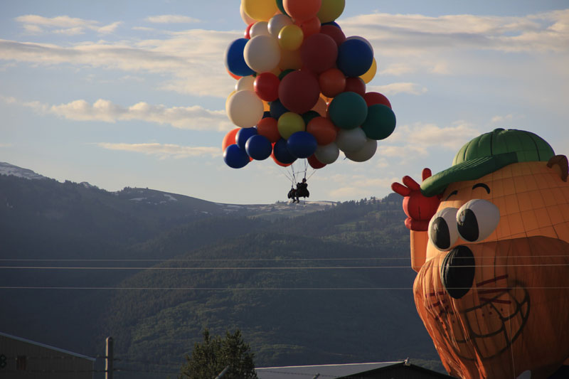 For the past 29 years, Driggs has hosted a hot-air balloon rally, now know as the Teton Valley Summer Festival. I had flown my hot-air balloon at the festival several times some years ago, and in 2010 I was invited back by Reid Rogers, President of the Chamber of Commerce, to fly my cluster balloon. I was delighted to accept, and the Fourth of July weekend found my crew chief Larry, his wife Victoria and me in the Teton Valley. |