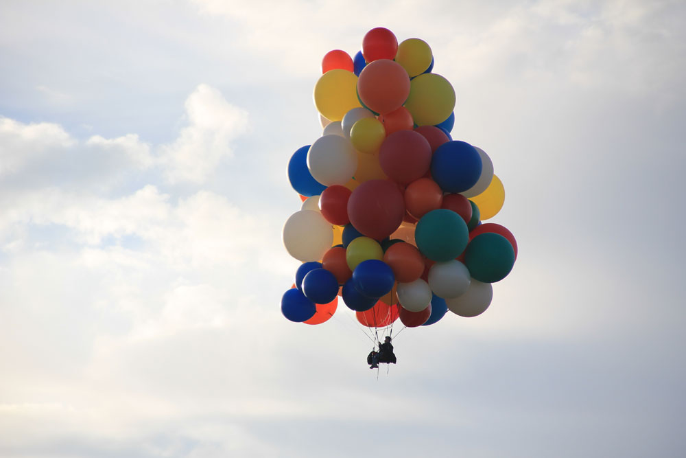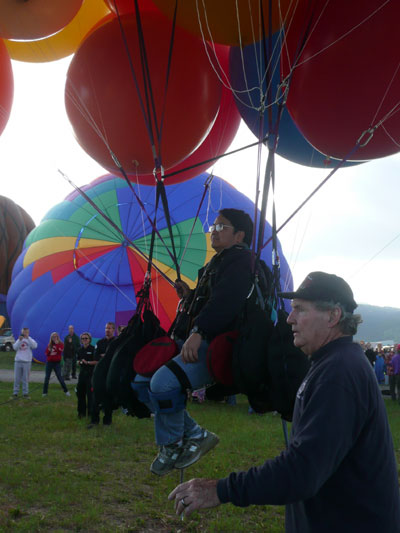 I had Larry release me, and I floated out, gaining altitude slowly and taking a few quick steps over the top of Ray Bair's balloon. |