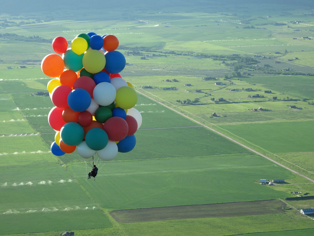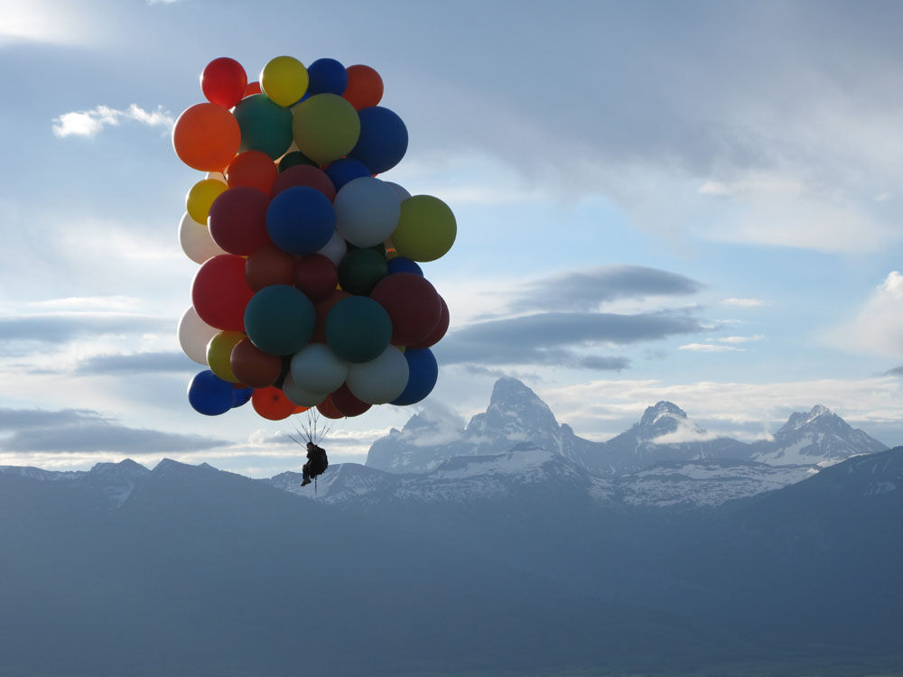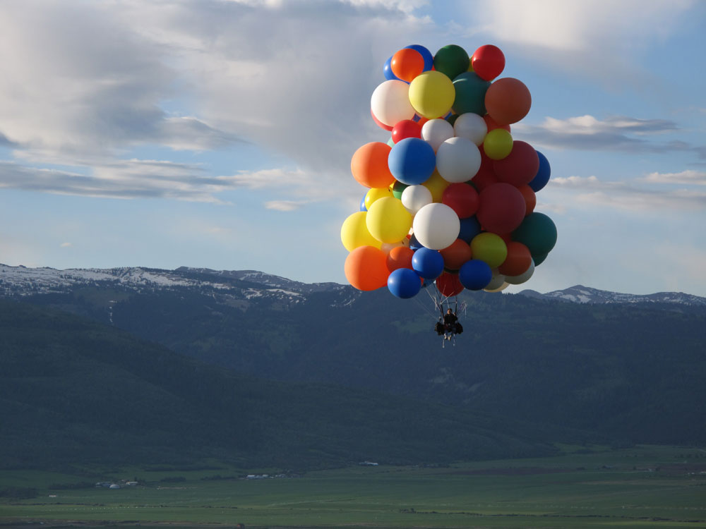 | Then I dropped some ballast and let my balloons carry me higher for a wonderful view of the Tetons. |