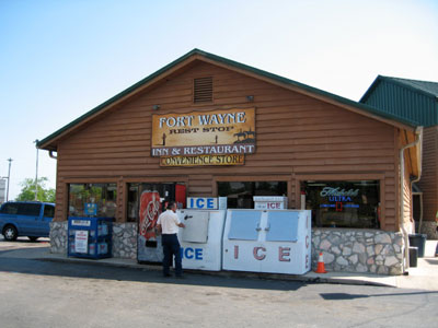 To my surprise, the winds died shortly before sunset, and the toy balloons released as part of the opening ceremony flew off briskly but not unreasonably so-- which left me wondering where the Weather Channel's 20 to 30 mph winds were. I puzzled and grumbled over the weather, then Roland and I went back to our rooms at the Fort Wayne Convenience Store, Restaurant and Inn to get a few hours of sleep. |