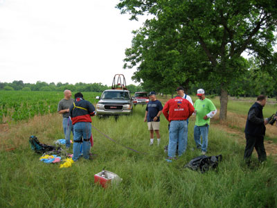 John and David had landed their balloons not far away, and after loading up their equipment, they and their chase crews came over to help deflate the cluster balloon.