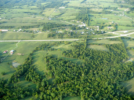 | The countryside was very beautiful -- not the big money thoroughbred farms and the related pretensions which the state seems to idolize, but real working countryside of a more modest and authentic kind. It was easy to understand why early settlers would follow the Buffalo Trace to settle here in this green and gently curving land. |