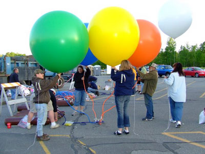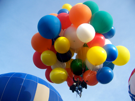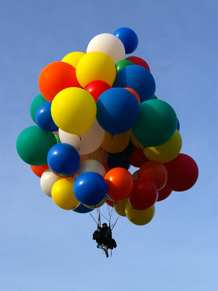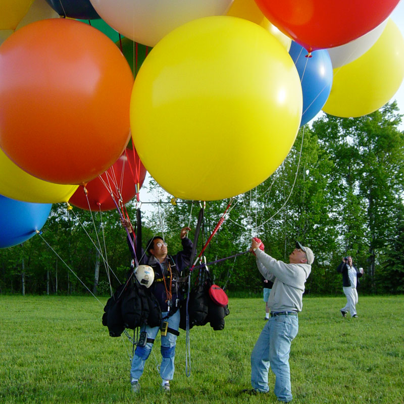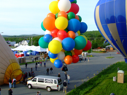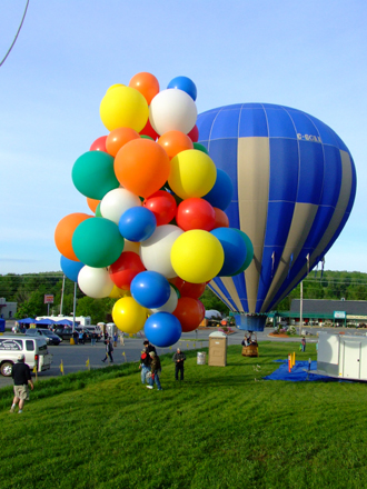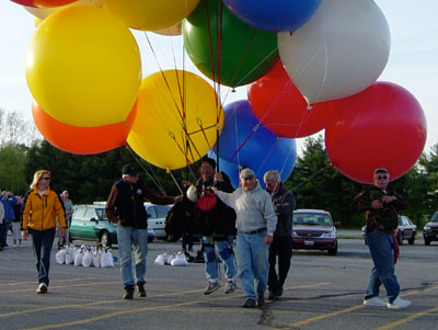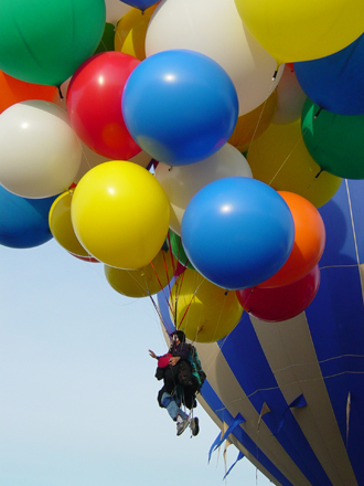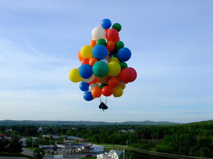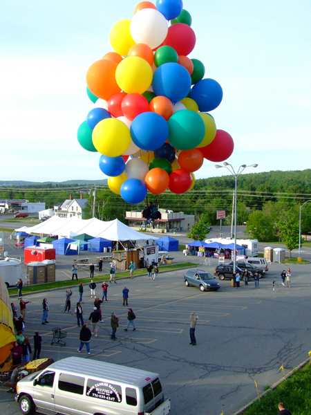 The hot-air balloons began to lift off. Crew released me, and my balloons carried me up into the skies of Maine. |