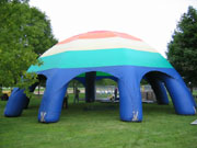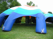 My cluster flight at Seven Lakes was scheduled for Saturday evening at 7 PM. There were plenty of crew volunteers from among the spectators and the hot-air balloonists and their crew. Craig had arranged for an inflatable dome tent for us to use.