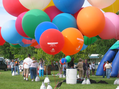 Seven Lakes State Park is located about an hour north of Detroit. For the past eleven years, local balloonists Craig and Michelle Elliott have been holding the Seven Lakes State Park Balloon Classic in July. In 2003 I attended the Seven Lakes rally, hoping to do a cluster balloon flight, but the event was cancelled due to rain and high winds. However, Craig and Michelle were kind enough to invite me back for another try in 2004. |