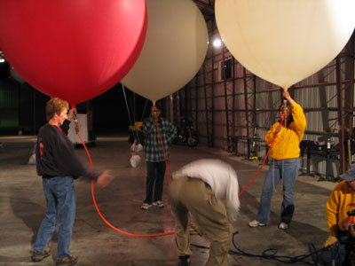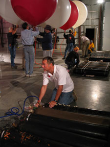 had helped to inflate the balloons, had opted to stay on the field and launch