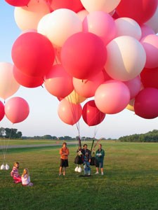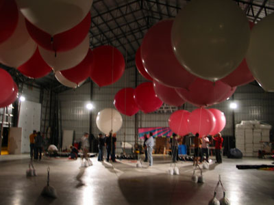 bunch of large, colorful rubber balloons with helium, and by attaching