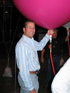helium balloon man got ready to launch.