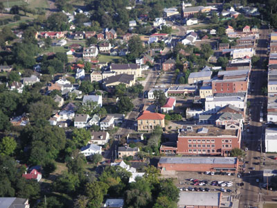 After another twenty minutes, Natchez was growing distant to the south, and Anna's Bottom was much closer. I went a bit higher to get back over the Mississippi shore, and passed over the one of the towers that held an electrical line over the river. |