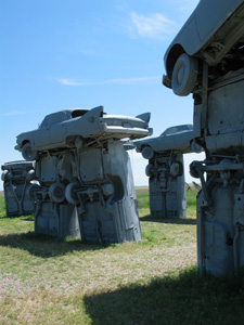 Outside the small town of Alliance (population 8,959) a mysterious monument rises from the Nebraska plain. Its purpose is shrouded in mystery. Astronomical observatory, shrine to long forgotten gods, portal from another dimension, -- science can offer no rational explanation. The monument itself stands mute, save for the wind whistling through its circled gates and columns: Ford and Chevrolet, models ancient beyond all memory, stacked and buried in the desolate prairie.... |