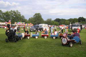 The Balloon Festival is the Pittsfield Rotary's largest annual fundraiser. The rally includes a carnival, with the usual vendors, rides and healthful carnival foods. A band plays, and there are fireworks. A man driving around the park on a riding mower "locomotive" tows a train of cars made from metal barrels that riders sit in. Pittsfield is not very far from Concord and Manchester, so people have doubtless seen more sophisticated entertainments, but the Balloon Festival is still very popular with the community. |