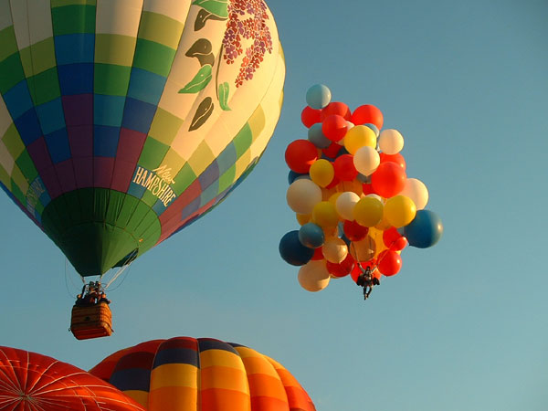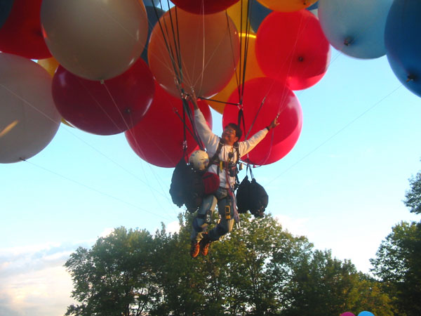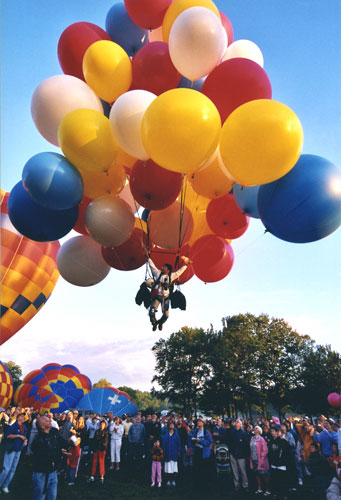 My balloons seemed to glow in the sunlight as I rose out of the shadows of the trees. |