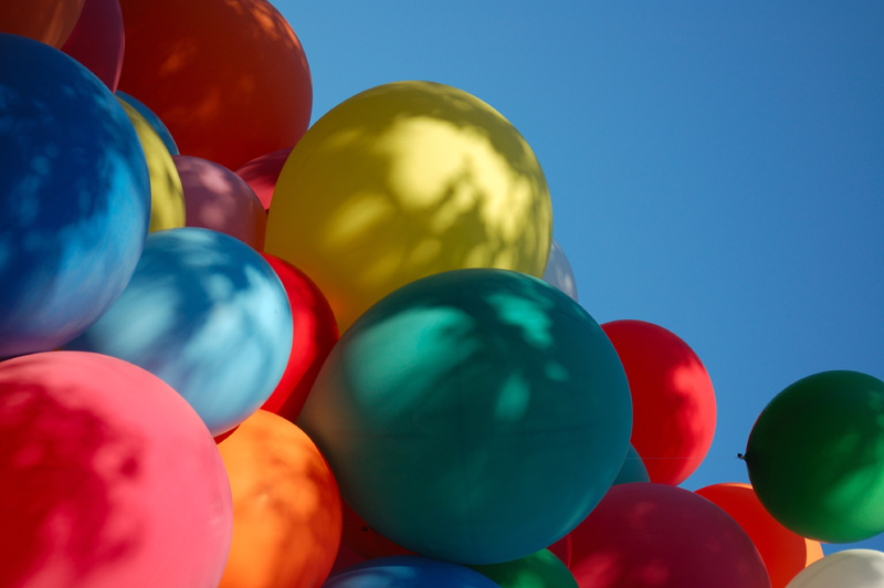 Soon my bouquet of balloons was blossoming there beside the sheltering the trees. |