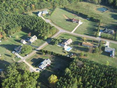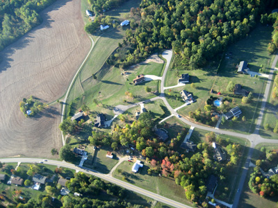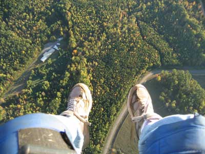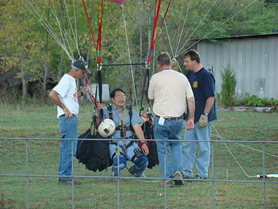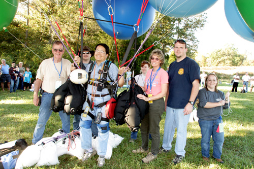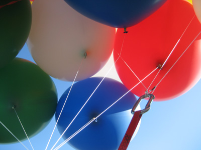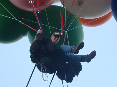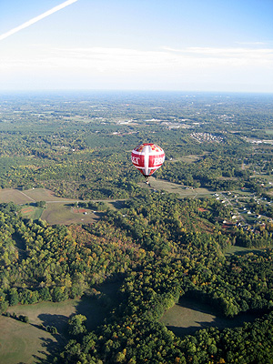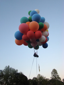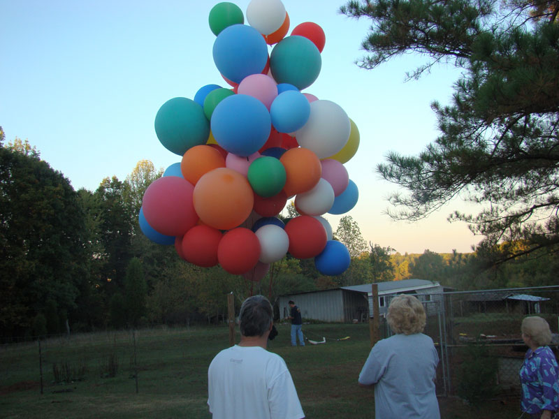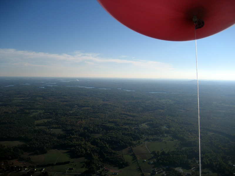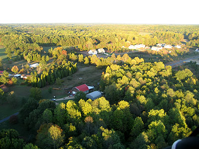 | Unfortunately, as I headed out further into the country, the roads were more or less random rather than any sort of grid, and crew were having trouble staying with me. So I descended to the treetops and started looking for a place to set down. After a time, I saw a small field, and released some balloons to drop in for a landing. The lady who owned the land came out shortly, having been alerted to my arrival by a neighbor who had seen me flying in. She gave me the address and some direction, which I relayed by radio to my crew. They arrived a few minutes later. |