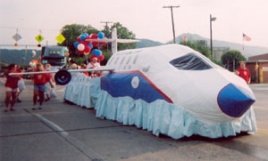 Prior to my arrival, the airport sponsored a float in the Fun Fest parade that featured Joe Frugal attempting to fly in a lawn chair attached to some toy balloons.