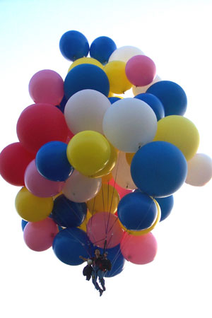 harness and go up on tether. Then, we put all my balloons away, and returned
