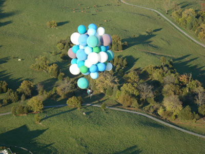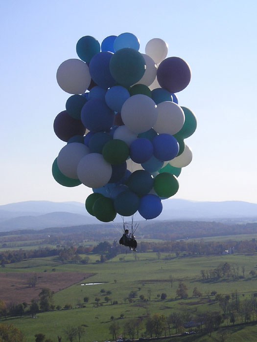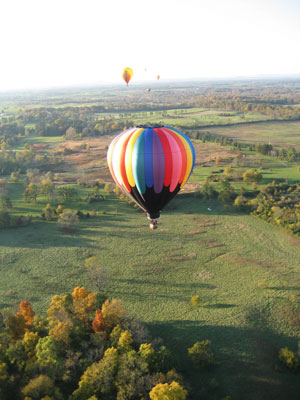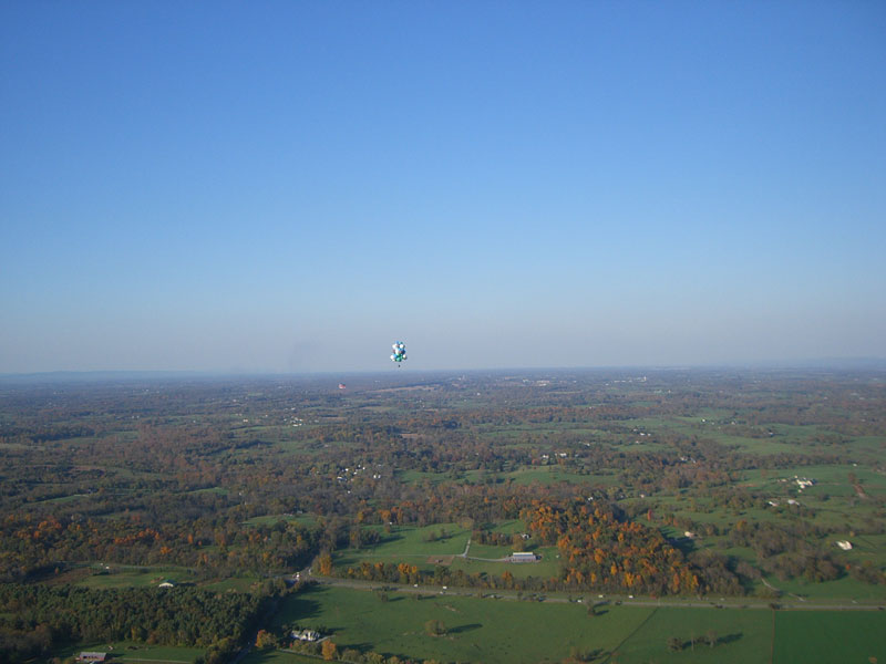 It was a pleasantly warm afternoon. The Shenandoah Valley was rich green with grass and trees, broken here and there by the golden yellow of autumn foliage. My balloons carried me to the northeast, off of Long Branch and over the surrounding farms. |