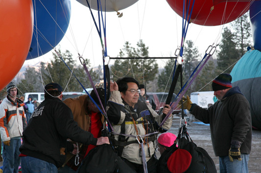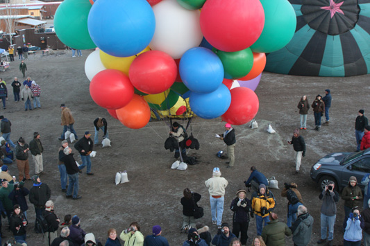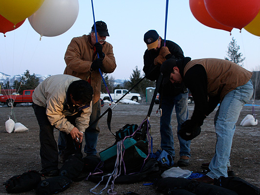 As the sky grew light, the crew began gathering my balloons together. |