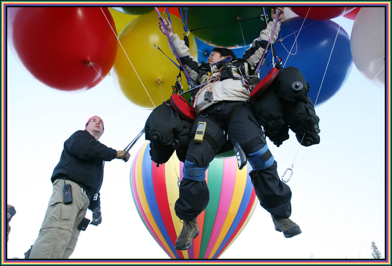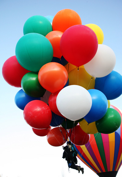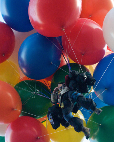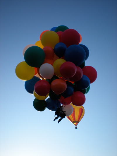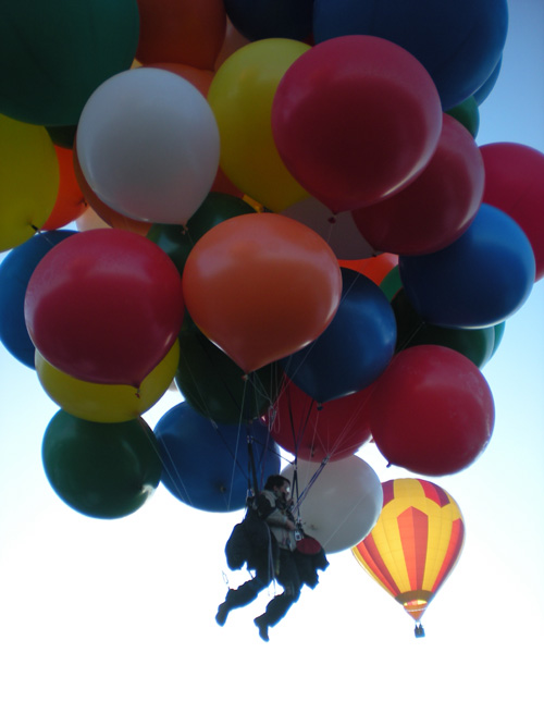 It was wonderful to feel the huge, colorful balloons pulling at their strings, ready to carry me off into the air. I had Ernie release me, and up I went. |