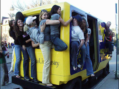 Morgantown is the home of West Virginia University. The campus sprawls across much of the city, linked by the futuristic Personal Rapid Transit system. At West Virginia football games, John Denver's "Country Roads" is sung by players and fans -- not something calculated to strike terror into the hearts of opponents, so they only do it at home games and only after they've won. |