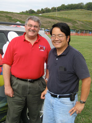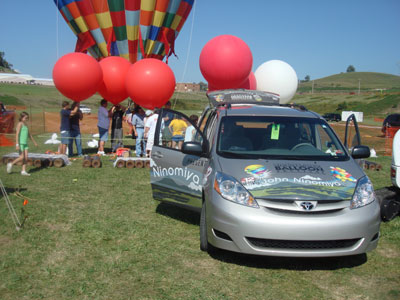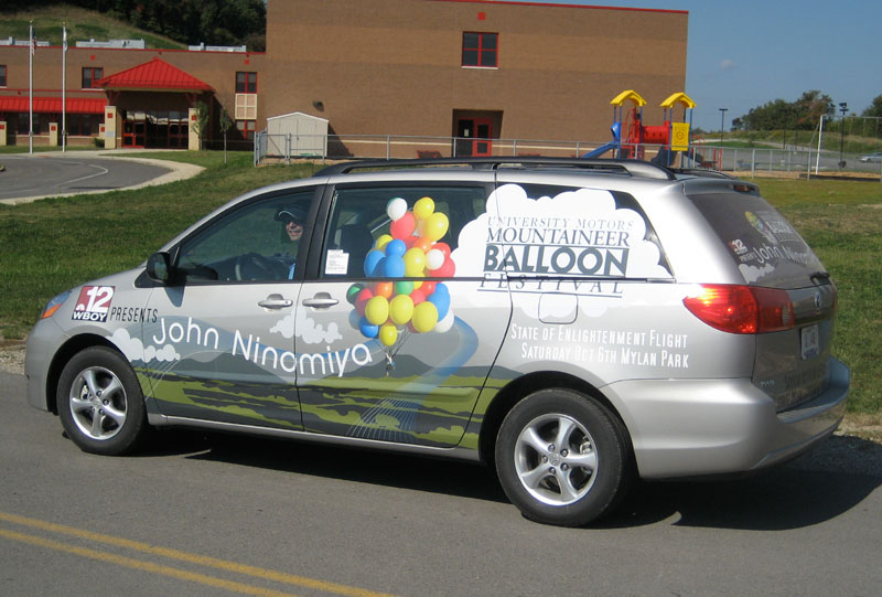 The Mountainer Balloon Festival's major sponsor is University Motors, a Toyota/Chevy/Mercedes/Cadillac dealership located on Don Knotts Boulevard. University Motors is owned by Andy Claydon, who came to the U.S. from the England many years ago, and settled in West Virginia. The balloon festival is a great labor of love for him and many of his employees. who volunteer their time to bring this event to the community. When I arrived in Morgantown, I was treated to the famous Anglo-West-Virginian hospitality. I had flown out for the event, and Andy graciously provided me with a car to use for the weekend. I assured him it was exactly like my chase vehicle at home. |