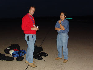 We went back to the motel. I sat around my room, occasionally calling the airport to the check the winds. Steve managed to dig up another helium cylinder for me, which combined with the spares I had would allow me to inflate add twelve fresh balloons to the cluster that evening. It was a long afternoon. |
