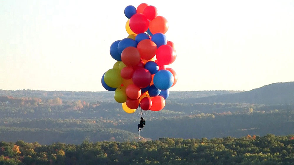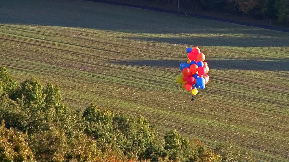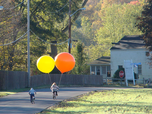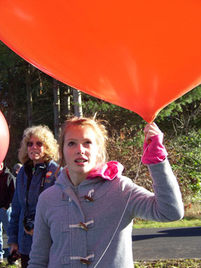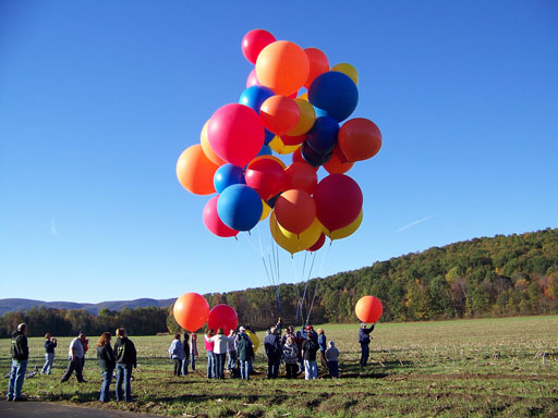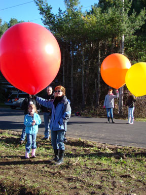 | Local residents came out to see the cluster balloon, and to take a few balloons home. |
