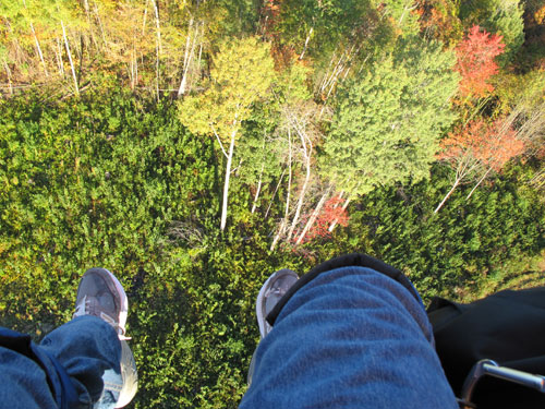 I called Gary and Carol on the radio, and had them check with our local crew volunteers about what lay out ahead in the direction I was going. Mostly trees, was the answer, which was pretty much all I could see out to the horizon. I decided to land. |