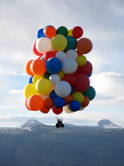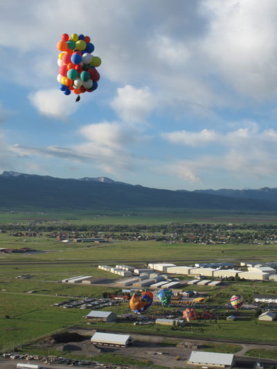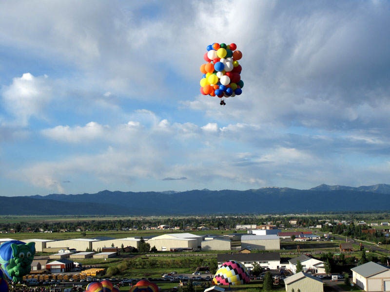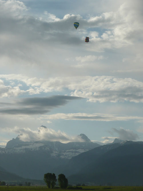 | Then I dropped some ballast and let my balloons carry me higher for a wonderful view of the Tetons. |