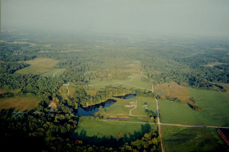 The countryside below was wonderfully pretty and green, with farm fields bordered with trees on gently rolling hills. I talked to my chase crew: they had just pulled out of the airport, already miles behind me.