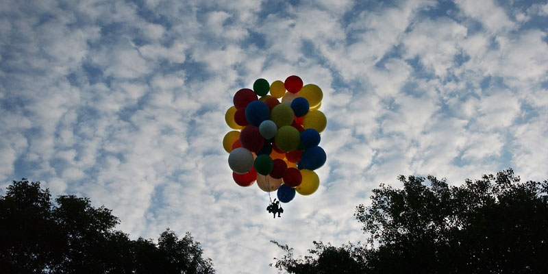 Whisked away by the wind over this rich, rolling, green-on-green earth-- who would have thought that Indiana would be such a fine place to seek enlightenment, whether through worship and meditation, or with a bouquet of helium-filled balloons? |