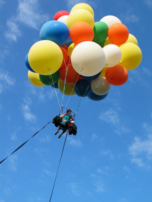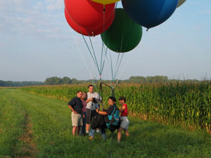 I threw my drop line down to Ernie. He caught it and slowed me down. I swung out over the corn and burst some balloons so my crew could reel me in for a gentle landing. I was very happy they were there. For that matter, I was pretty happy about everything, just then.