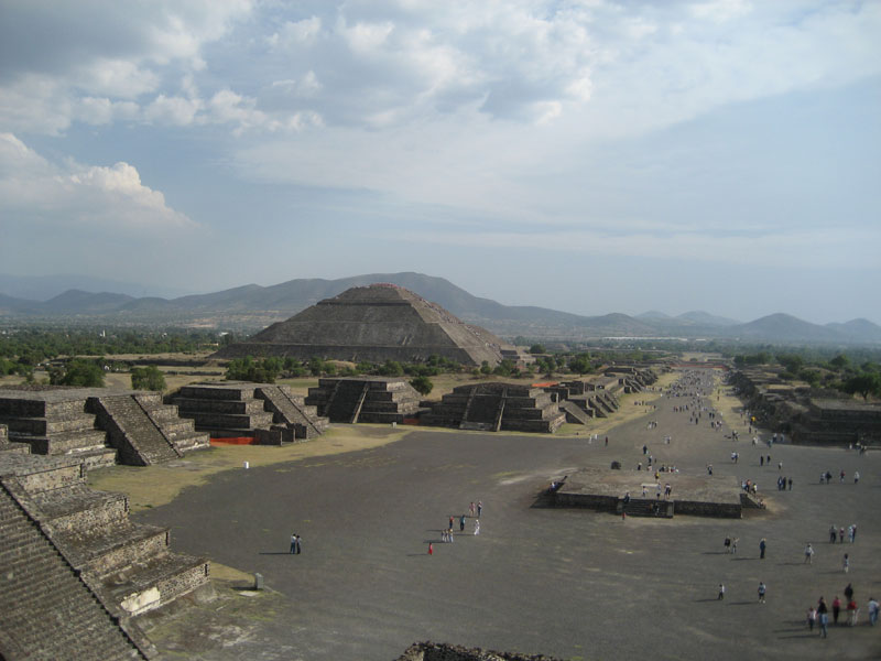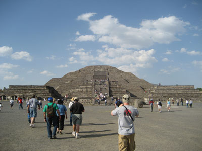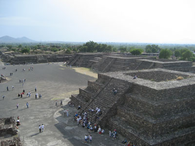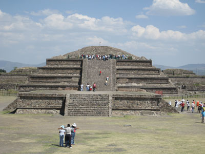 Teotihuacan was once the site of a much larger city inhabited by a pre-Columbian people about 1300 to 2000 years ago. At the center of this city was a massive religious and ceremonial complex. Two huge pyramids dedicated to the Sun and the Moon, and a temple dedicated to the Feathered Serpent, were located along a wide central avenue. The city was eventually destroyed and abandoned, for reasons that are still unknown. The ruins of the pyramids and temple complex were eventually discovered by the Aztecs, who named this strange place the City of the Gods. |