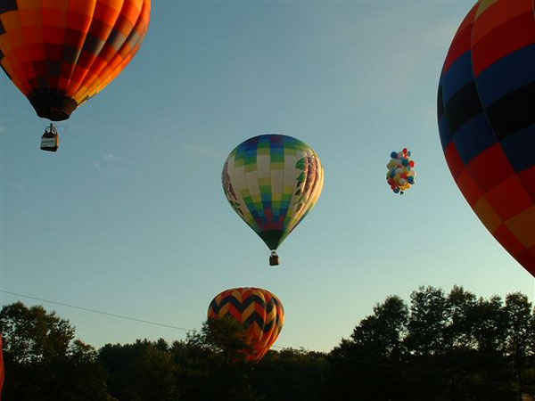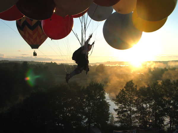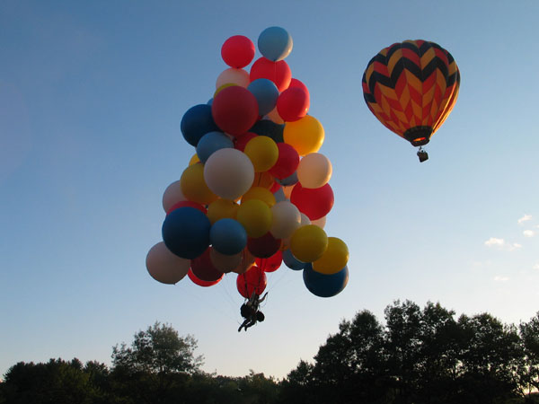 My balloons seemed to glow in the sunlight as I rose out of the shadows of the trees. |