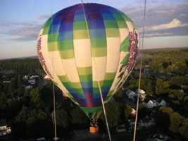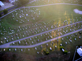 The other balloons were staying low, trying not to travel too far too fast. There was a temporary flight restriction about eight miles to the east, because the President was visiting somewhere in Maine. I leveled out fairly low, too, but enough higher than everyone else that I pulled out ahead the pack. At first there were a fair number of open areas visible among the trees. I passed over a cemetery (the ones who didn't manage to live free, I supposed) and followed the main highway out of Pittsfield. |