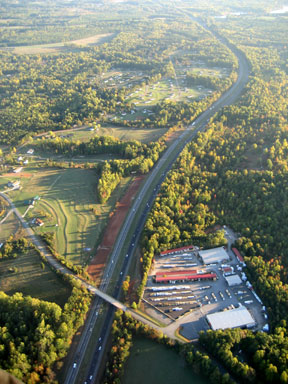 | Statesville is located in the Piedmont region, a plateau between the coastal plains and the Appalachian mountains. Beyond the airport, I could see some lines of hills rising up to the west. |