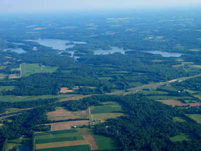 Consulting with our local crew volunteers, Debbie told me on the radio that before much longer, I would be crossing US 30 and heading over Charles Mill Lake, a swampy area with limited road access. I decided to land rather than risk being becalmed over the lake.