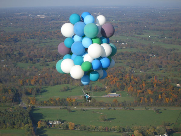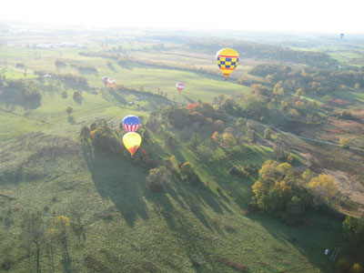 It was a pleasantly warm afternoon. The Shenandoah Valley was rich green with grass and trees, broken here and there by the golden yellow of autumn foliage. My balloons carried me to the northeast, off of Long Branch and over the surrounding farms. |