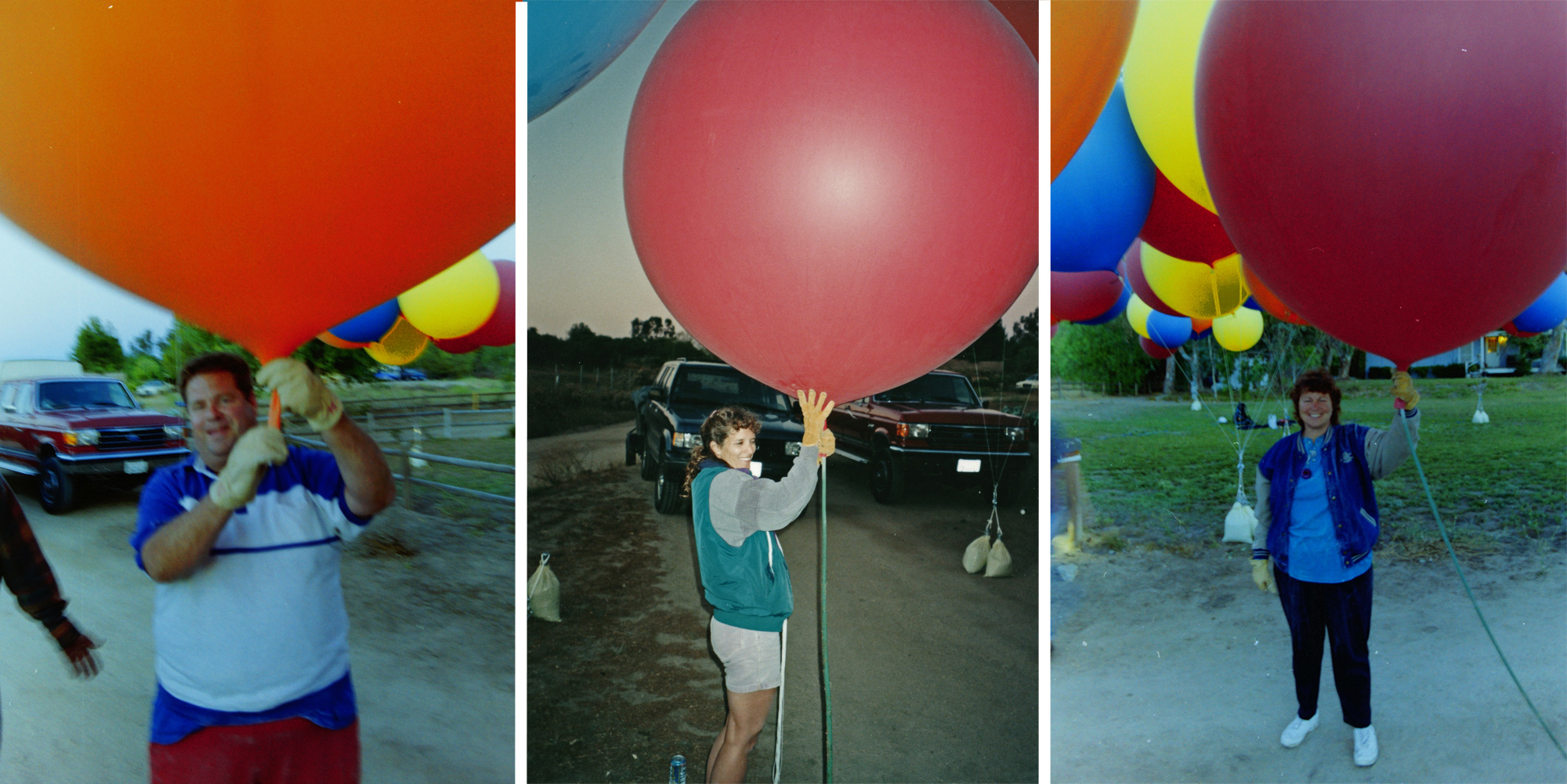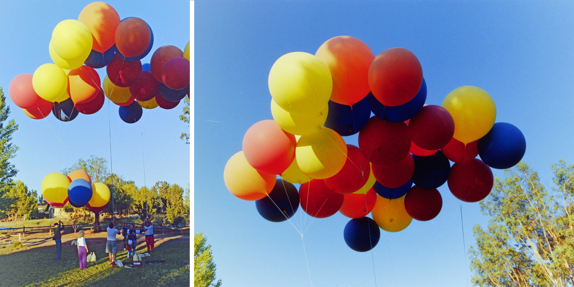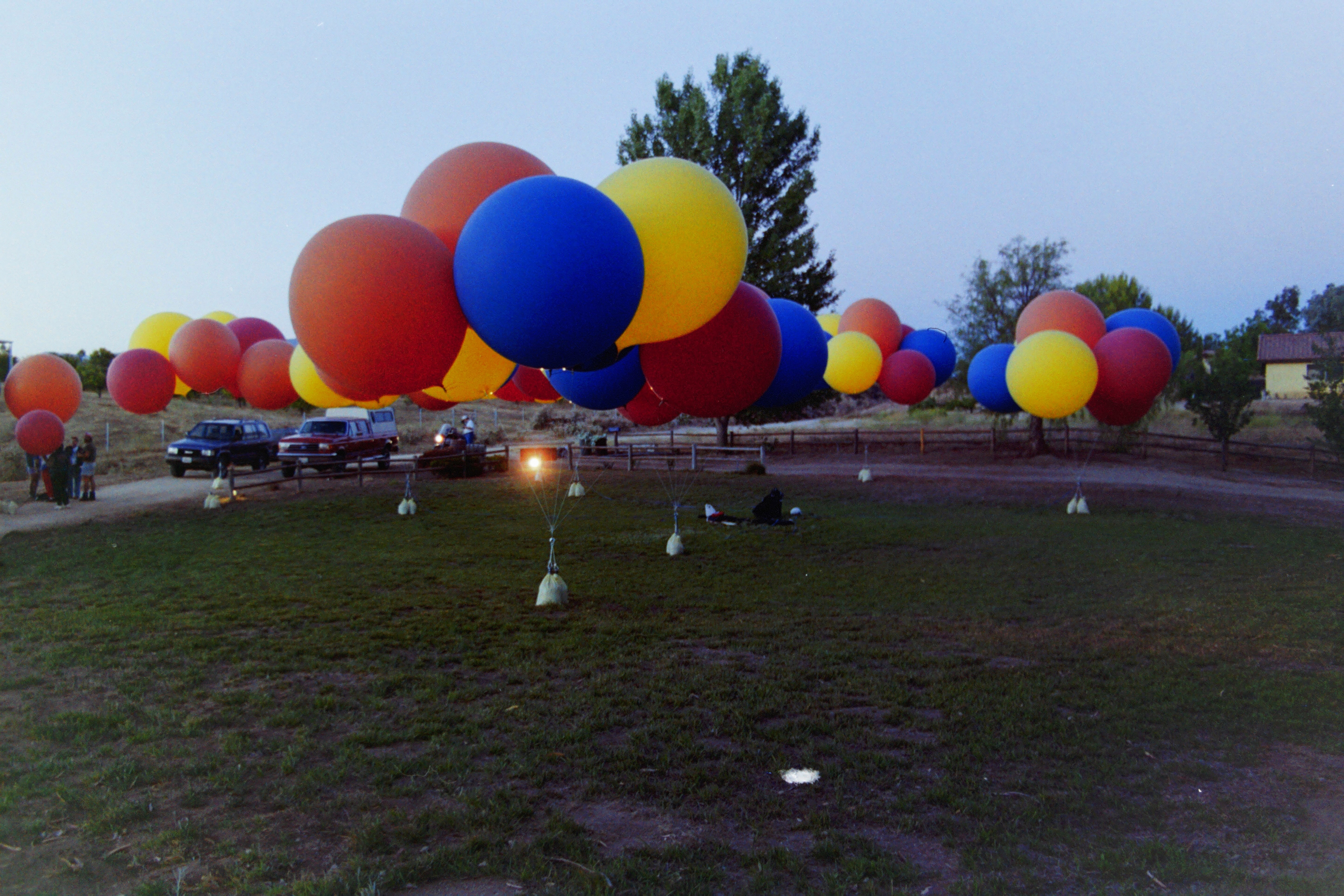 I loved the way the latex balloons looked, but I was worried about how a large number of balloons might tangle their strings, making them impossible to pull down to burst. Don Piccard had told me of a flight he'd attempted with helium weather balloons where such tangling had occurred during inflation, forcing him to abandon the attempt.