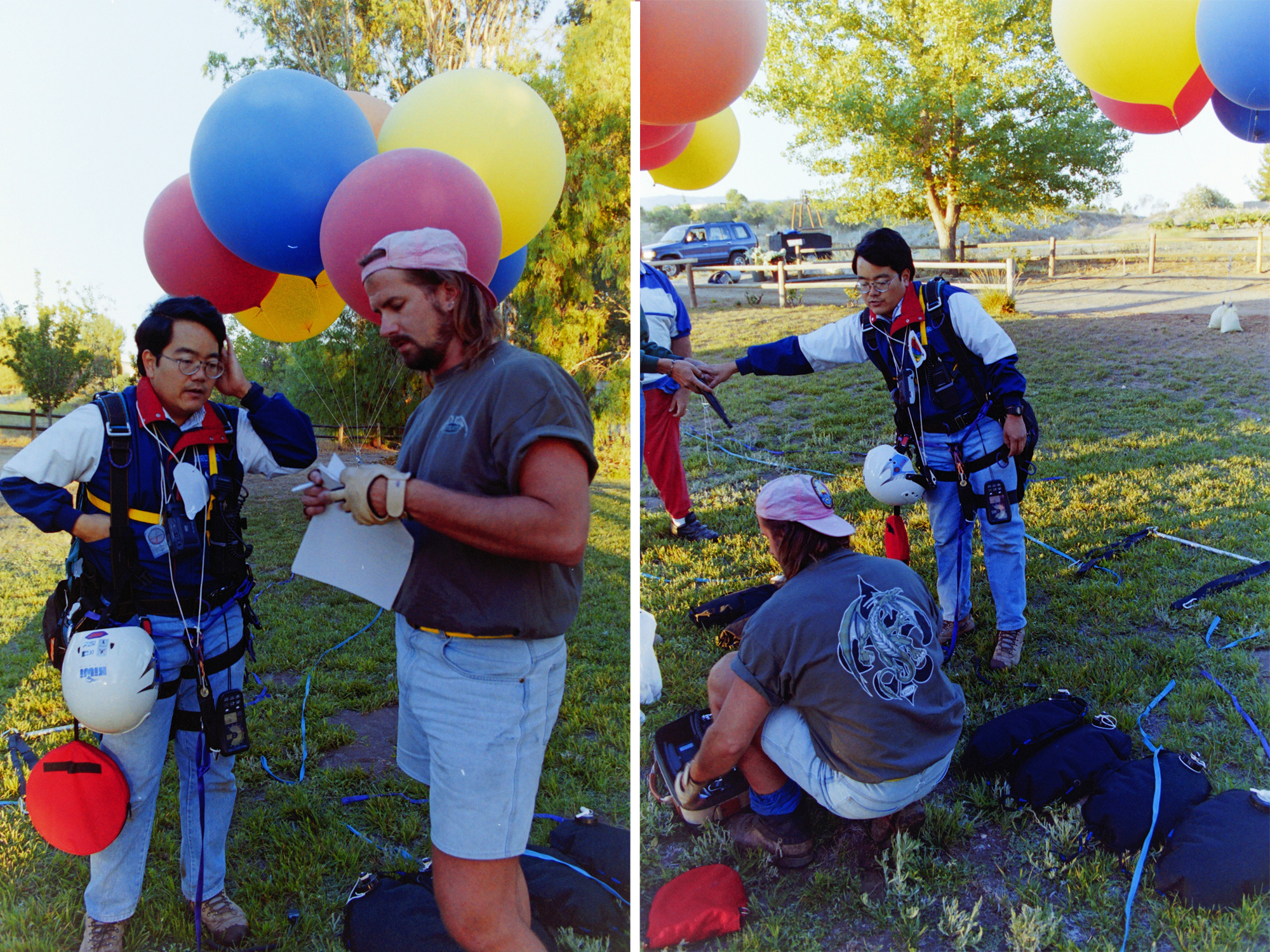 I planned to fly in Temecula, in the Southern California Wine Country, an area I was familiar with from hot-air ballooning. Dean Ekdahl, a photographer and hot-air balloonist, had offered his front yard for my launch. Balloonists and balloon crew from Temecula and San Diego showed up at 3:30 AM to help inflate balloons.