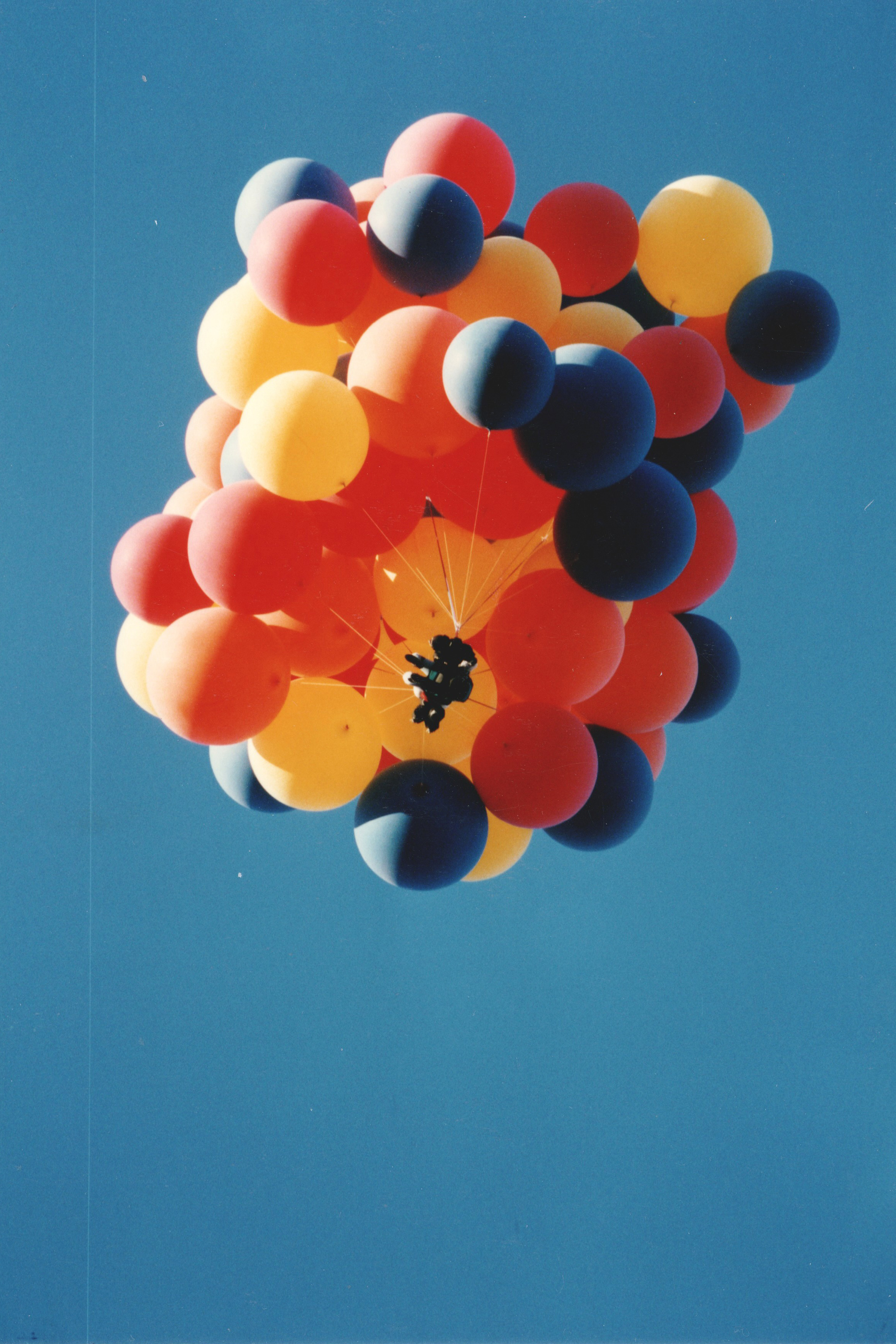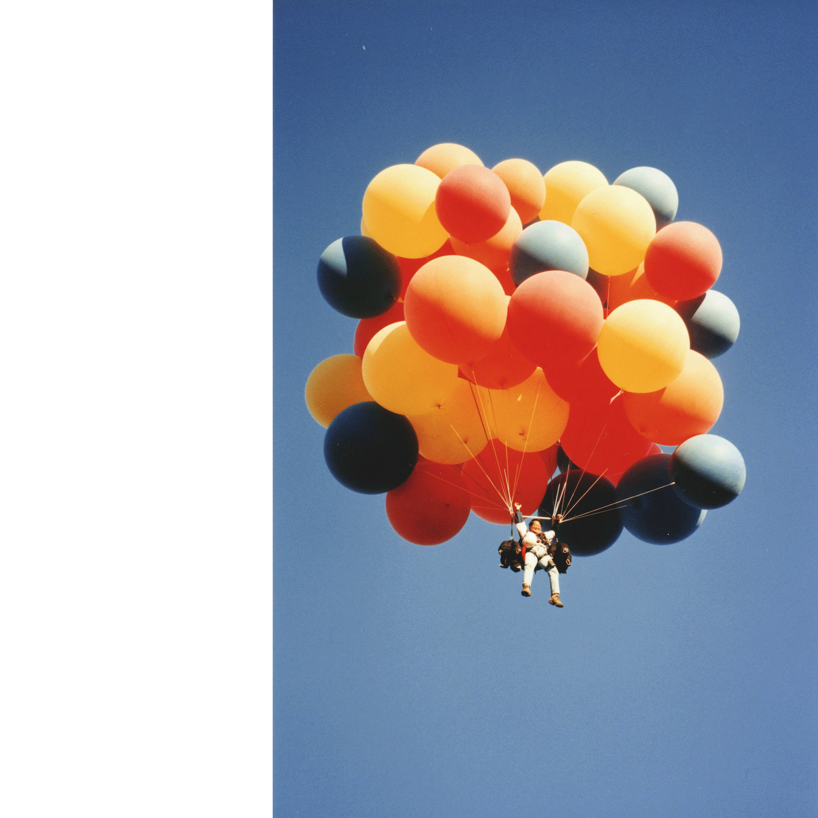 "Fifteen years ago today on July 2, 1982, a man named Larry Walters, a thirty-three-year-old truck driver from Southern California, decided to go for a balloon flight. Knowing nothing about ballooning or aviation, Larry filled forty large weather balloons with helium , tied them to his lawn chair and with the help of friends, took off. He only intended to ascend to a few hundred feet, but due to some basic misunderstanding of ballooning physics, he ended up at 16,000 feet over the Los Angeles area. He flew for three hours and was seen by numerous jet airline pilots flying in and out of LAX. At the end of that time, he landed safely, and walked into the waiting arms of local police, and the FAA, who fined him several thousand dollars....