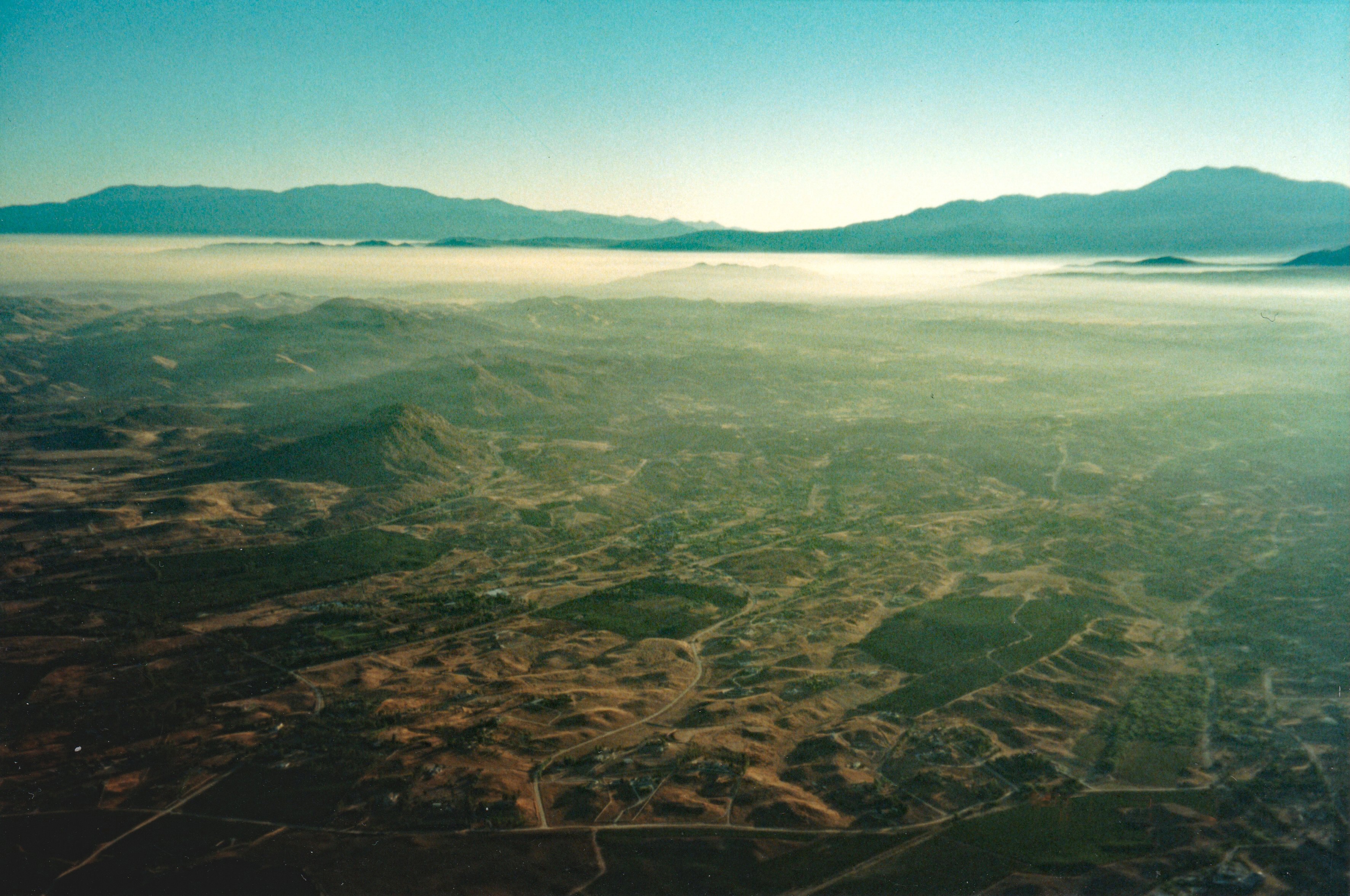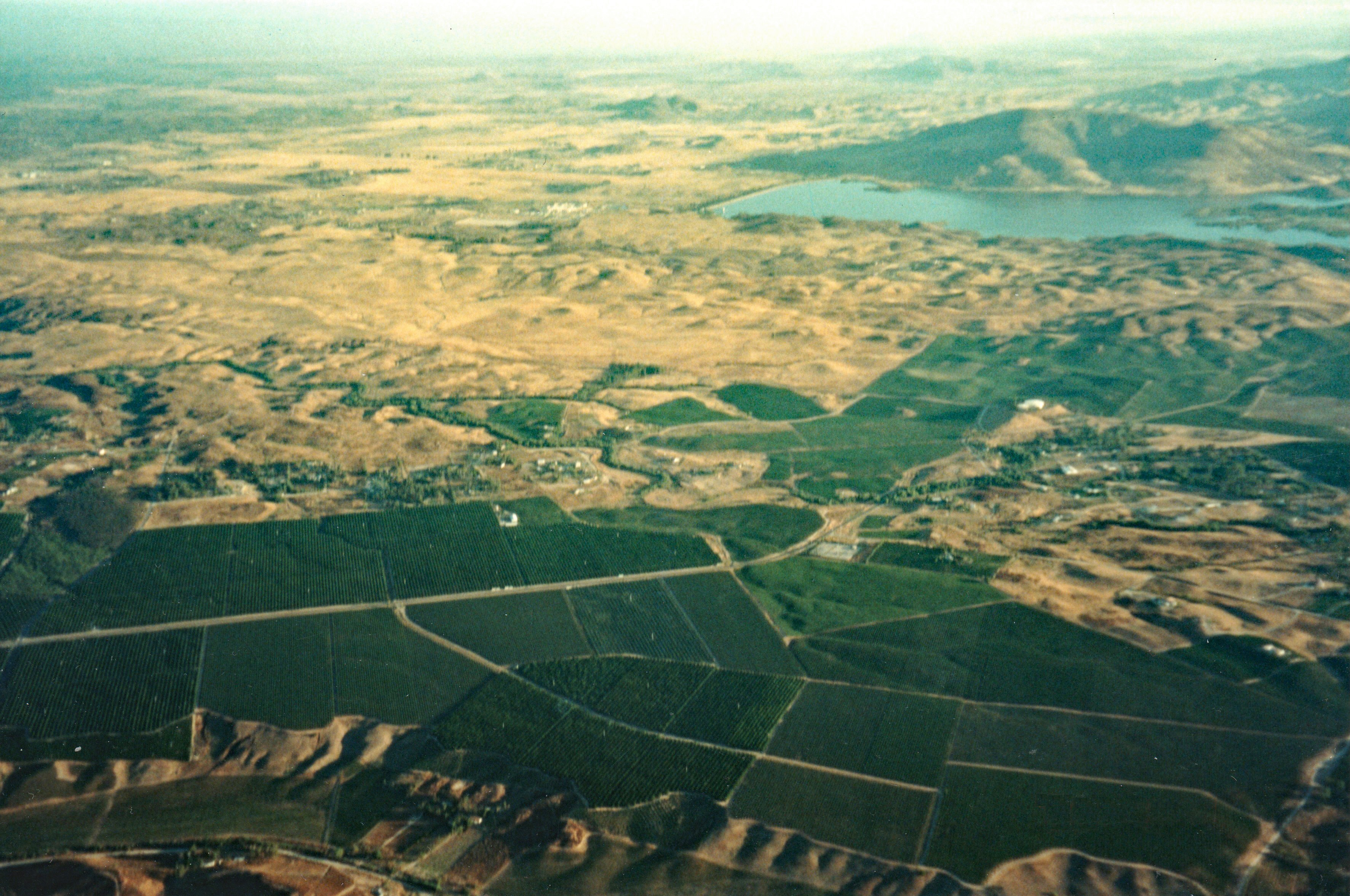 I was ascending at a bit over 400 feet per minute. It was a pretty day in the Temecula Wine country, with clear skies and a bit of light haze. After a few minutes I could see across the vineyards out to Lake Skinner.