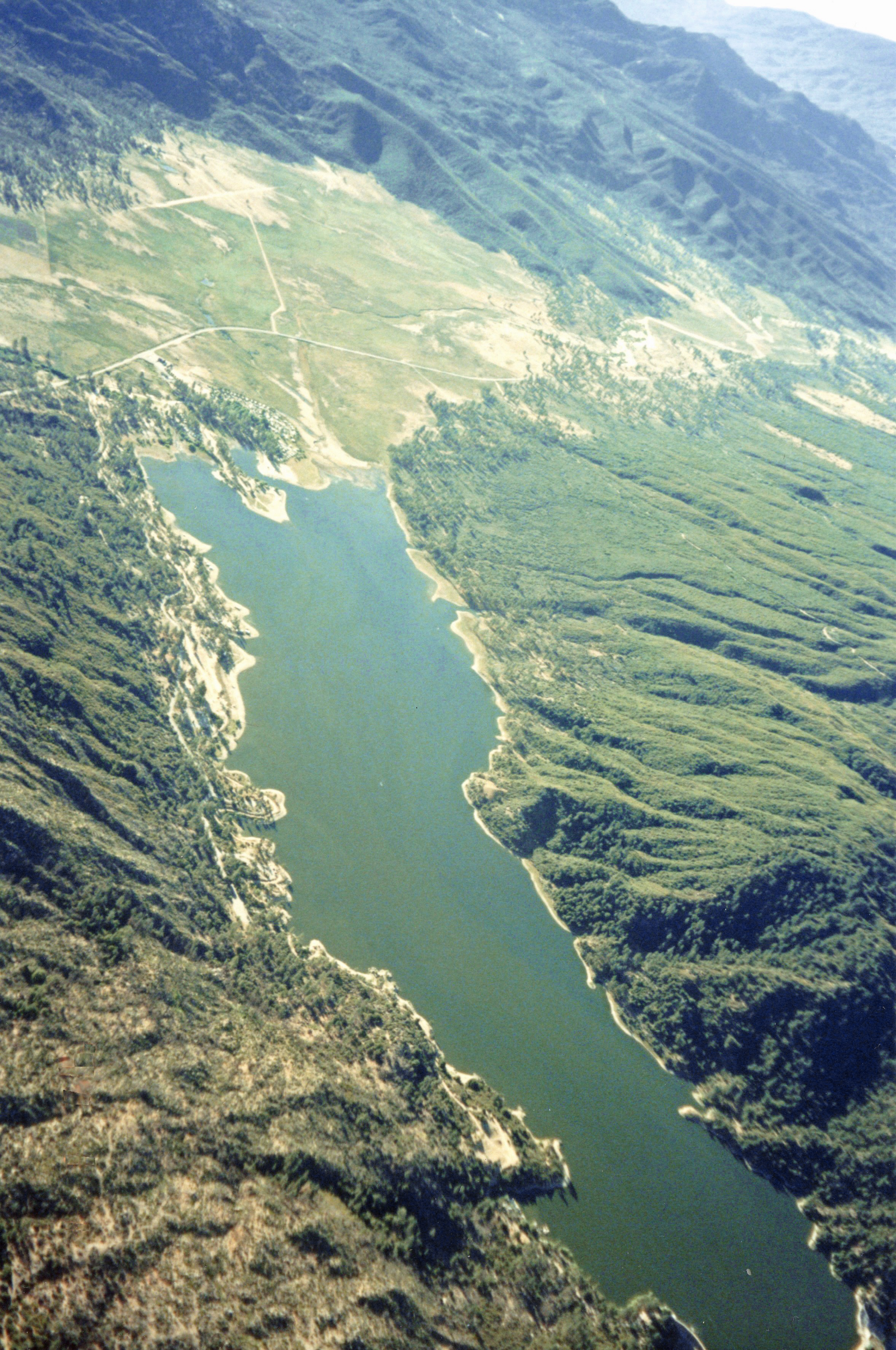 I continued to descend. I could see a lake out ahead of me; Ernie consulted his map, and we agreed this must be Lake Hemet. Crew were still several miles back, heading in my direction. Past the lake I could see big meadows with small stands of pine in between, dotted here and there with ranch buildings. There were dirt roads, and a two-lane highway. I dropped ballast to slow my descent to 200 feet per minute down. I also pulled three balloons down and tied them closer to me for ready access.