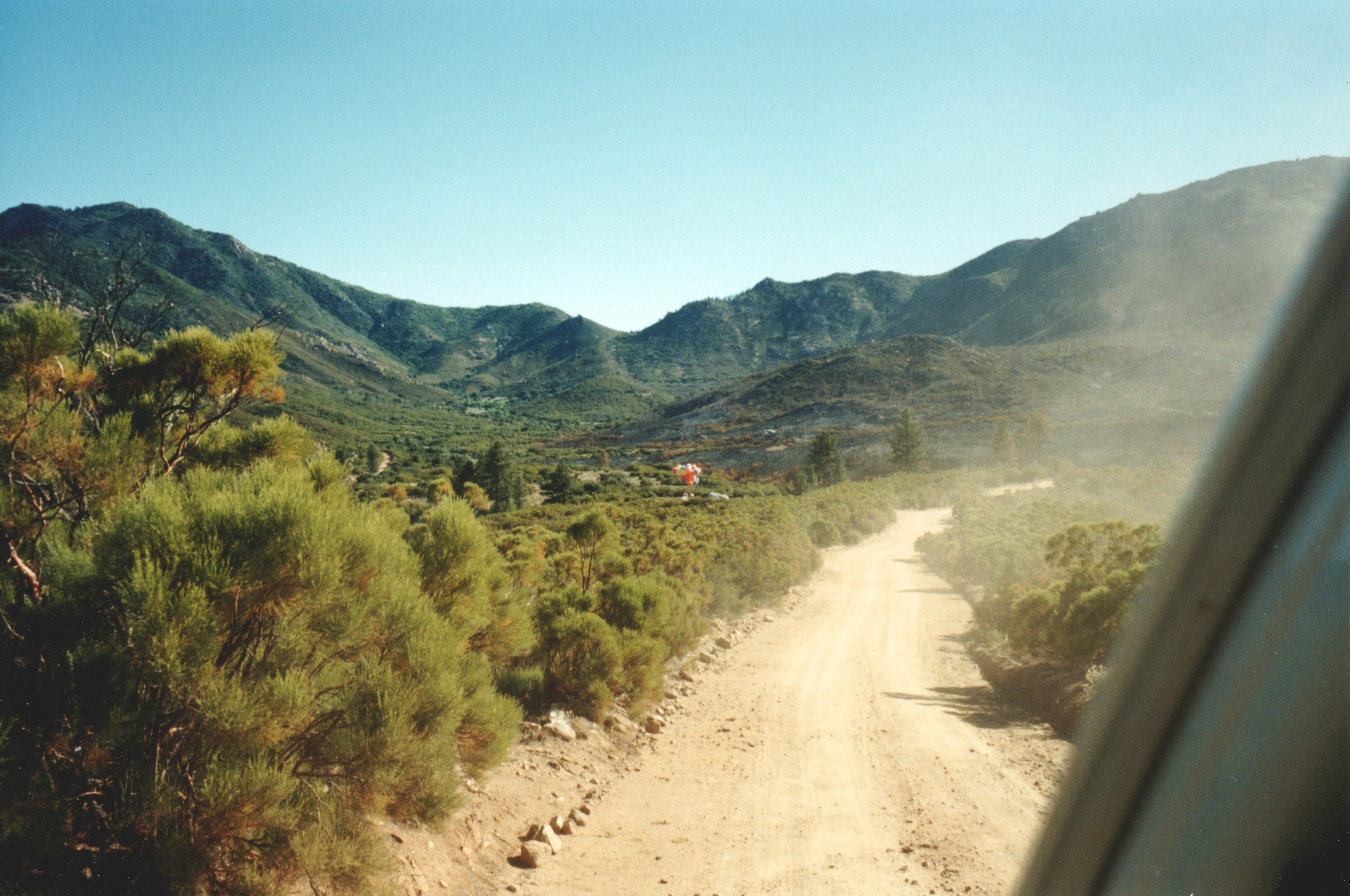 I was still moving east, over a lightly-populated rural area well east of Temecula. On the radio, Ernie told me that they still had a visual on me. This far out the road grid petered out, and Ernie thought they would have to detour several miles through the town of Anza to get out to where I was heading.