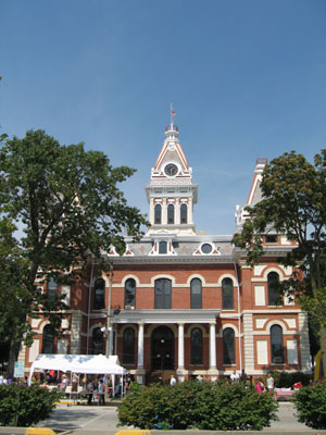 Pontiac, Illinois is located about two hours south of Chicago, in the middle of miles of almost perfectly flat land covered in alternating squares of corn and beans. With a population of about 10,000, Pontiac is a city of with many well-kept older houses and pleasant tree-shaded streets. The Vermilion River runs through the town, crossed at three points by swinging bridges. A massive courthouse in Second Emplire style dominates the downtown area. Caterpillar has a large plant in Pontiac. Other major employers include a prison, and the Order of Saint Francis hospital. |