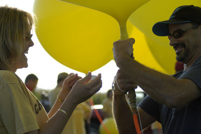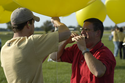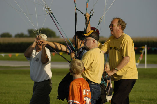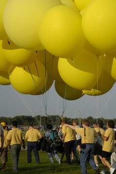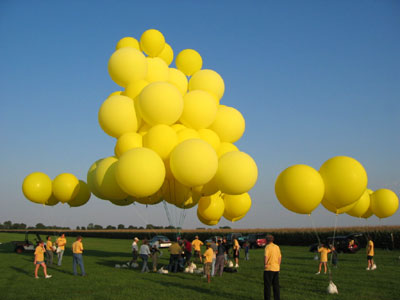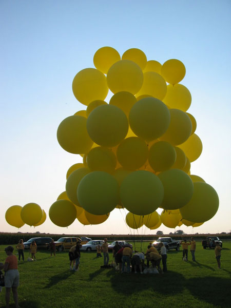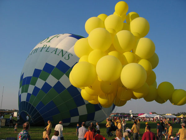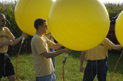Just a few weeks before the event it seemed that there would be no flight, when the compressed gas vendor that Kent had lined up many months before suddenly backed out, claiming supply difficulties. Luckily the Airgas store in Peru, Illinois came to the rescue, not only providing the gas, but generously coming aboard as a festival sponsor. So, here's a shameless NASCAR-style endorsement plug for them. |
